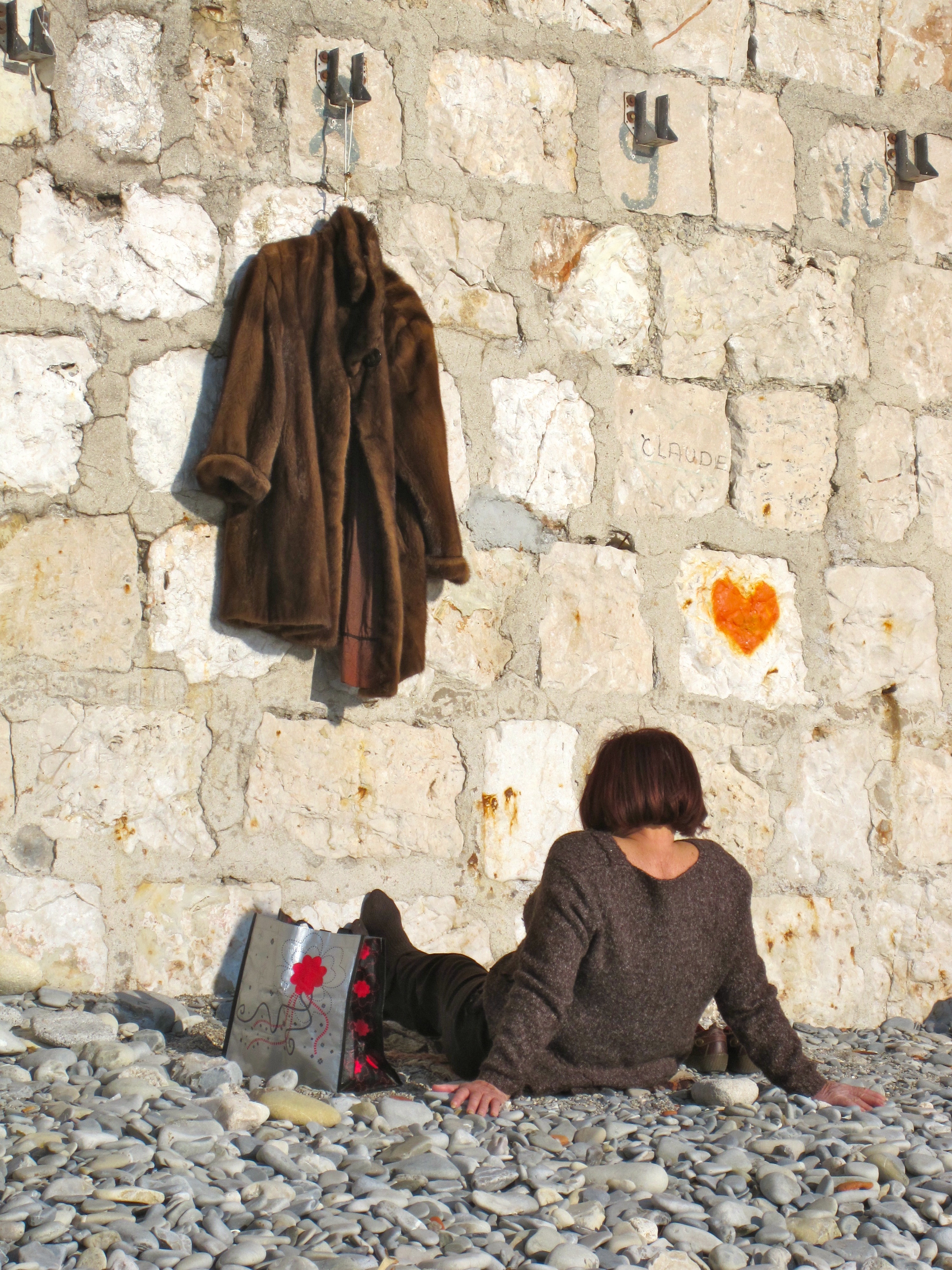 I couldn’t resist taking this photo when on Nice beach for St Valentine’s Day ’12. I don’t know the woman. She never noticed me taking the photo and my lovely wife was sunbathing further along the beach.