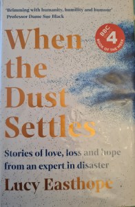 When the Dust Settles helps us to appreciate the inevitability of disaster and the care of responders to every single victim. It is noticeable how Lucy’s professional disaster awareness and experience is entwined with a far more personal account of crises and disasters in her own life (and her living through them). She is disarmingly honest about the difficulties, disappointments and disasters that she has faced and this gives an air of authenticity and integrity to her writing. She understands the risks of disasters and the ripple effects of disasters. Disasters don’t occur in isolation. “They domino into other disasters, and as they unfurl they become entangled with the other challenges in our lives that would have occurred regardless”. (p264)