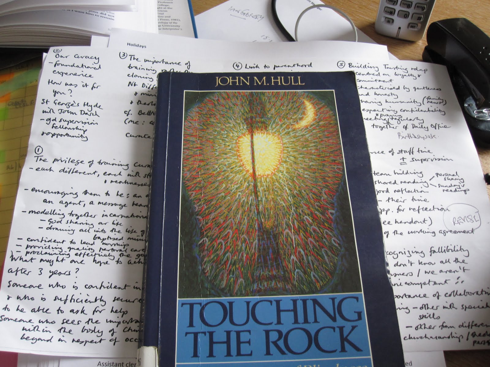 I have been reading John Hull‘s incredibly moving and honest account of the onset of his blindness, Touching the Rock. He refers to the “thousands of tiny accidental happenings” which led him along the path to blindness. According to Hull faith transforms such accidental happenings into the “signs of our destiny”, by “retrovidence” rather than “providence”.